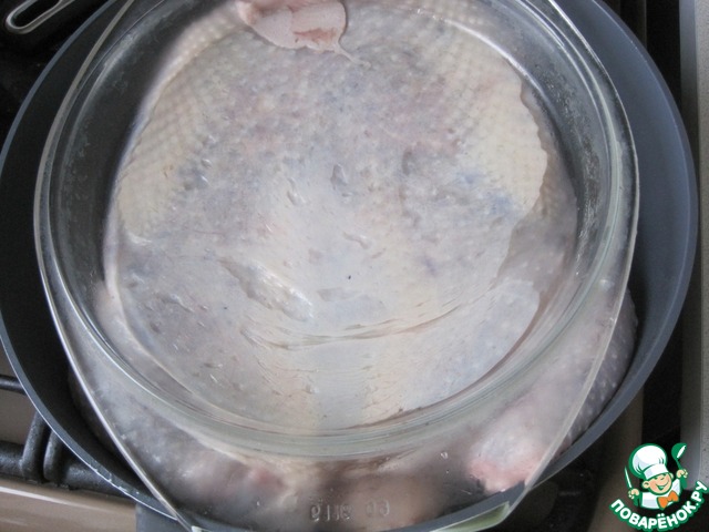 Я покрыла стеклянной крышкой и поставила полный чайник, для пресса.