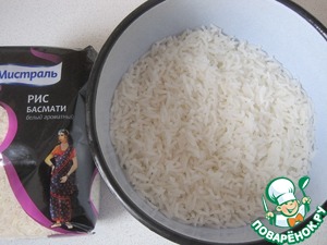 Рис отвариваем (у меня ТМ Мистраль БАСМАТИ)