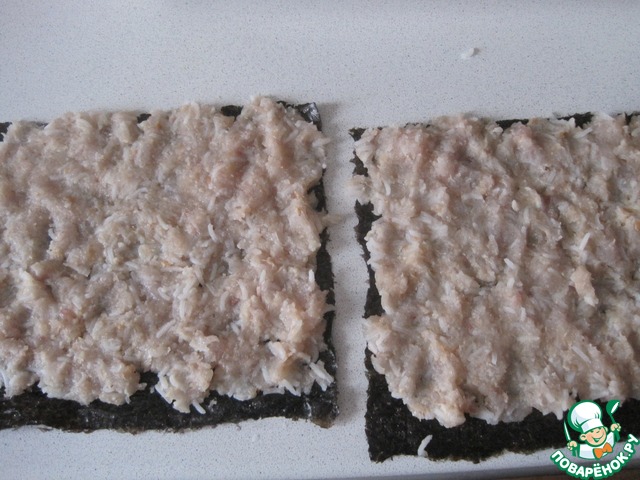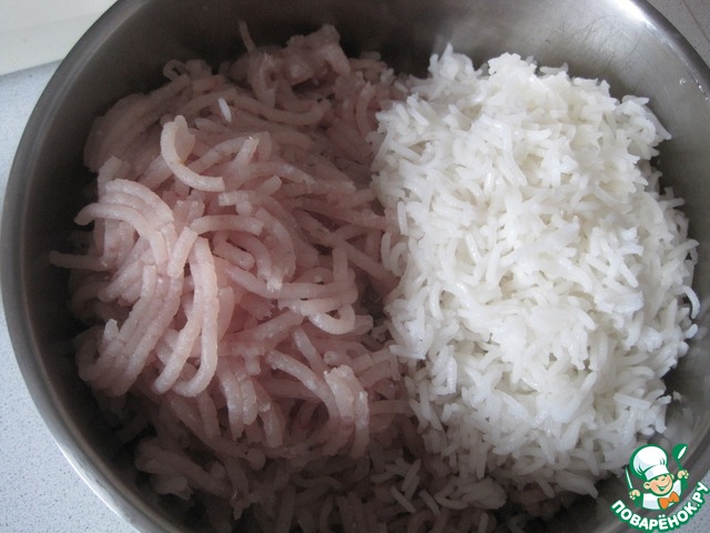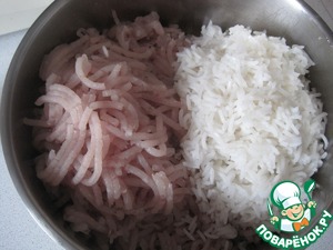 Соединяем мякоть рыбы, рис, добавляем слегка взбитые белки, соль, перец и перемешиваем.
