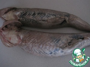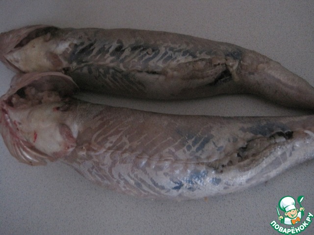 Снимаем кожу, подрубаем кость около головы и хвоста.