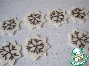 Из корнетика растопленным темным шоколадом рисуем снежинки