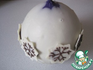 Приклеиваем снежинки растопленным шоколадом к шарику.