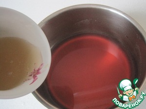 Готовим малиновый мусс (Взбитое в пену желе). Из малины выжимаем сок (у меня малина была замороженная)