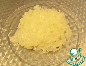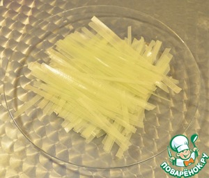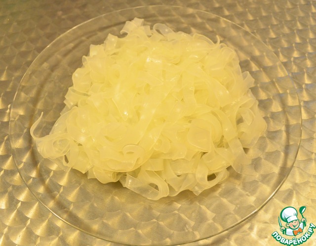 Фунчозу придётся разломить на части такой длины, чтобы Вам было удобно есть, как никак – салат. Я свою разломила пополам