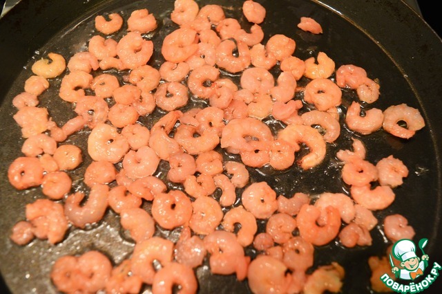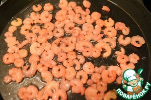Креветки посолить и сбрызнуть лимонным соком, дать настояться минут 10. Разогреть на сковороде растительное масло и слегка обжарить креветки с двух сторон.