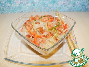 Выложить в салатник, украсить карамелизированными креветками и подавать к столу. Приятного аппетита.