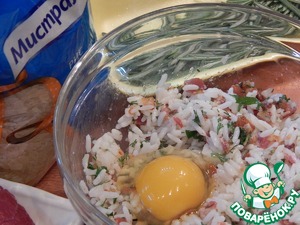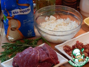 Вот наши продукты. Рис я отварила заранее и лук обжарила с грудинкой.