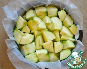 Первым делом подготовить яблоки. В рецепте-оригинале рекомендуются брать именно антоновские яблоки. Нарезать их на четвертинки и удалить сердцевину.