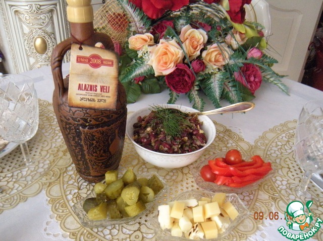 Яркий и вкусный салат. Да-да, именно салат, а не второе. Острый, пикантный и сочный. Если вы любитель фасоли, то поверьте на слово, оторваться будет невозможно. Таким салатом я часто заменяю себе обед и ужин, особенно когда мне надо за пару дней скинуть пару кг. На сайте есть варианты салата-лобио, но этот вариант - именно, как готовят салат в Грузии. Угощайтесь!!!