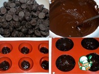 Шоколад растопила в микроволновке и разложила его в форму с шестью ячейками в виде полусфер. Для более быстрого застывания шоколада форму поставила в холодильник. |
