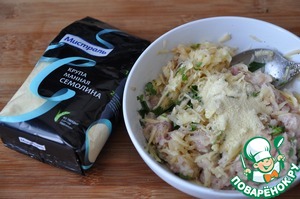 Берём крупу манную "Семолина" от "Мистраль", добавляем в фарш.