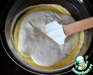 В полученную яично-масляную массу добавить сметану и осторожно перемешать.