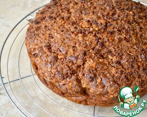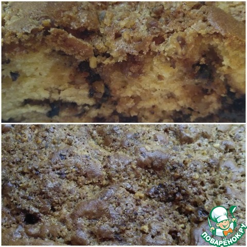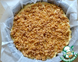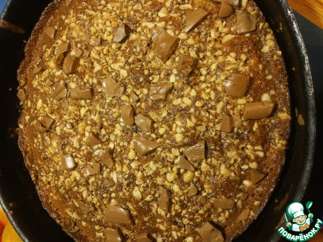 Посыпать оставшейся половиной орехов и поставить пирог выпекаться в разогретую духовку на 45-55 минут. В любом случае следить за пирогом по своей духовке и проверить готовность деревянной шпажкой.