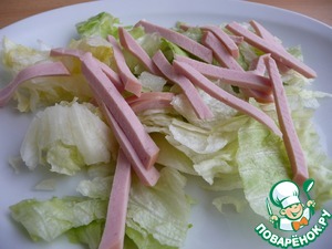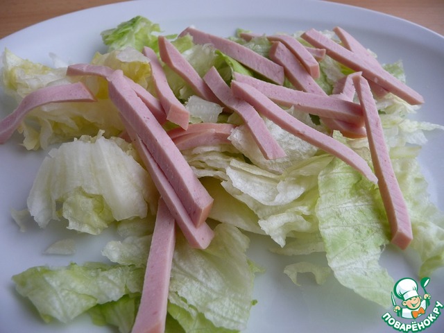 Колбасу нарезать ленточками.