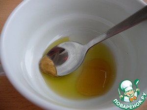 Для заправки смешать, оливковое масло, горчицу, сок лимонный