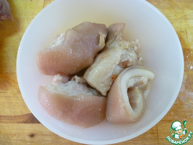 • Отвариваем шкурку в подсоленной воде 60 мин.