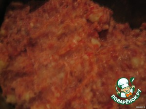 В фарш добавить мелко нарезанный чеснок, посолить, поперчить и перемешать.