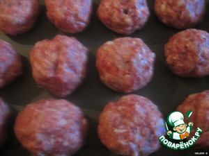 Сформировать биточки и выложить их на противень, смазанный растительным маслом.