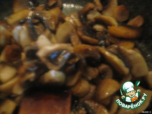 Шампиньоны нарезать довольно большими кусочками и обжарить на масле до золотистого цвета.