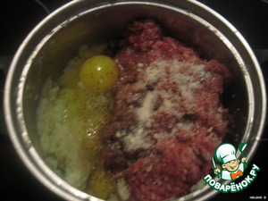Заранее приготовить пюре. Выложить пюре в мясной фарш. -