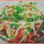 В нашей семье слабость - салаты из кальмара. Кажется, уже перепробовала все сочетания. И всё же нашла не совсем обычный по вкусу салат с оригинальной заправкой. Для любителей овощей и кальмара он может стать украшением Новогоднего стола. Кроме того, это салат не отягощён калориями и прост в исполнении.