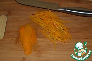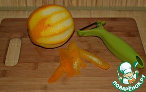 Срезать цедру с апельсина овощерезкой или острым ножом.