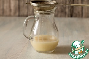 Заправка становится однородной смесью молочно-белого цвета. Затем смесь процеживаем через ситечко.