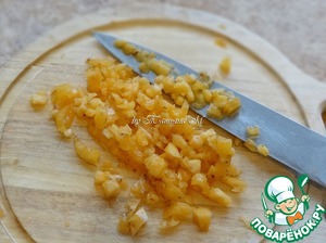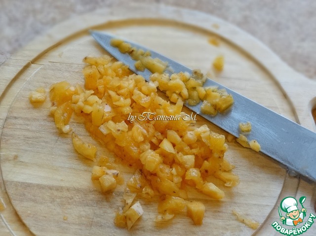 Половина вырезанной мякоти хурмы измельчить ножом;