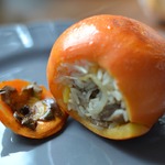 Нивкуснейшее, яркое фаршированное блюдо из хурмы! Сочная начинка с уткой отлично сочетается с мякотью хурмы, а яркий цвет фрукта придется кстати на праздничном столе!