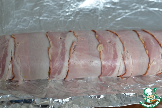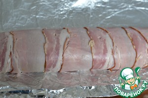 • На фольгу раскладываем бекон внахлест.