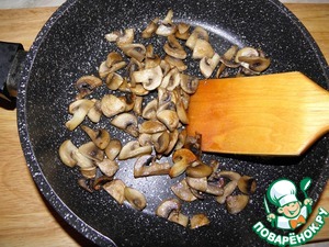 Грибы обжарить на сковороде с небольшим кол-вом масла. ( если будет лук, то добавить к грибам) (специи не забываем)