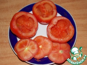 У помидоров вырезать сердцевину, оставить чашечку.