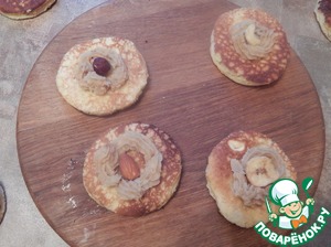 На каждую половинку наносим пасту с помощью шприца в виде круга.