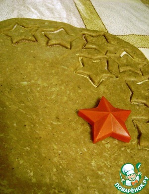 Я вырезала звездочки и формочкой мне послужила старая звездочка с елочной гирлянды…красная такая! -