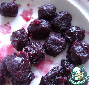 Замороженную вишню без косточек засыпаю на ночь сахаром по вкусу и немного добавляю Амаретто или подобного алкоголя.