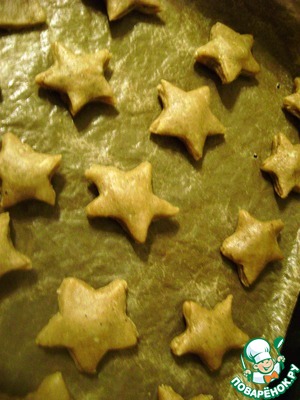 Начиненные звездочки уложить на застеленный противень и выпекать при 180 градусах до легкого румянца-минут 15.