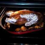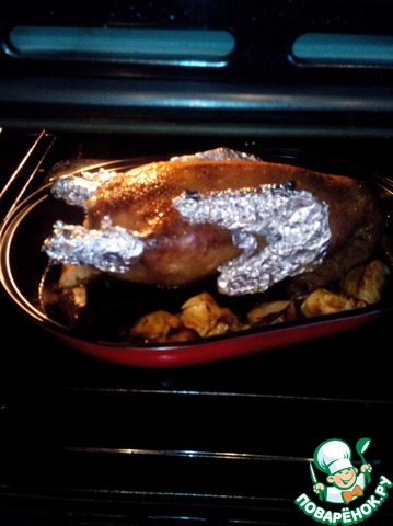 Когда духовка разогрелась, отправляем в неё утёнка.