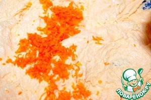 Масло взбить с сахаром и не переставая взбивать ввести по одному яйца. Добавить натертую цедру и перемешать лопаткой.