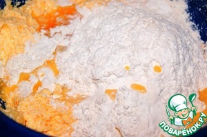 Муку, крахмал и рахрыхлитель просеять вместе. -