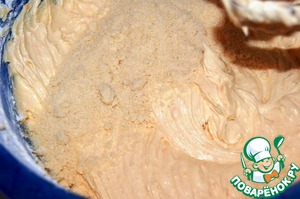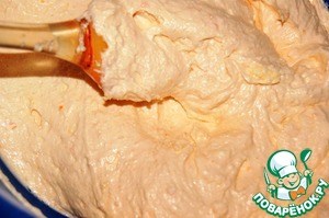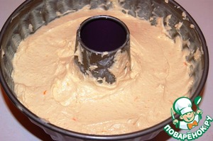 В два приема добавить апельсиновый сок и мучную смесь, перемешивая лопаткой.
