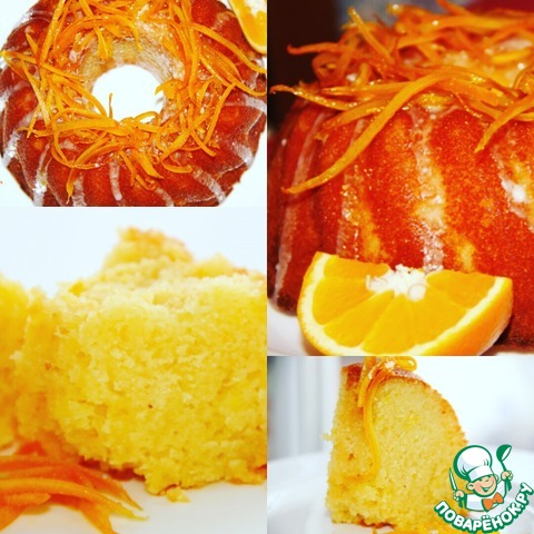 Выпекать в прогретой до 180"С духовке 40-50 минут. Ориентируйтесь на вашу духовку! Достать кекс из духовки и не вынимая из формы пропитать сваренным апельсиновым сиропом, сделав глубокие проколы тонкой деревянной шпажкой.