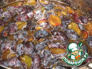Засыпать сахаром и перемешать. Оставить на 30 минут, слива должна дать сок. -