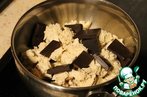 Добавить молоко и сливки, поставить на медленный огонь. Помешивать постоянно, до тех пор пока не растворится весь шоколад. Снять с огня.