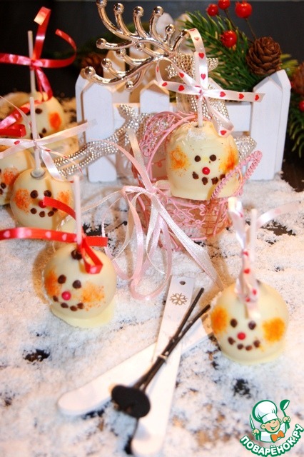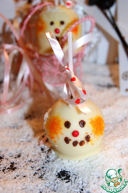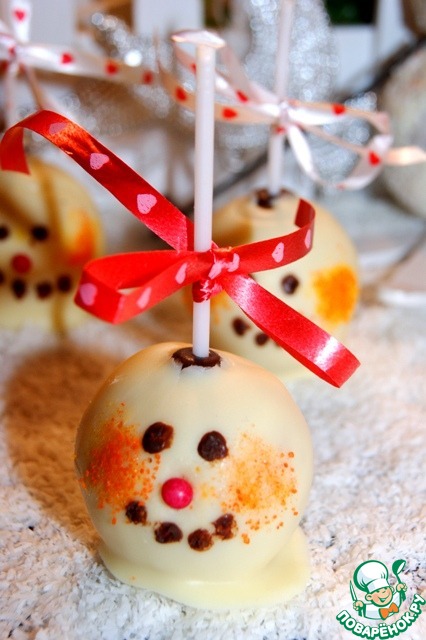 Рецепт «Шоколадные кейк-попсы "Снеговики"»: