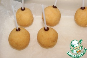 Растопить шоколад. Приготовить палочки. Достать шарики из морозильной камеры. Окунуть палочку в растопленный шоколад.
