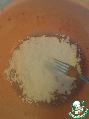 Смешать 150мл варенья с 200мл кефира и содой. Тщательно перемешать и убрать в сторону на 10-15 минут