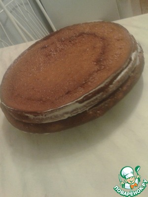 Вылить тесто в форму и выпекать 40-50 минут при 180 градусах. Корж можно будет разрезать на 2, но я выпекаю отдельно друг от друга 2 коржа, чего и вам советую :)