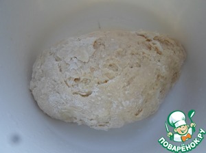 Всыпаем муку и замешиваем мягкое и не липнущее к рукам тесто. Убираем в тепло на 1 час.