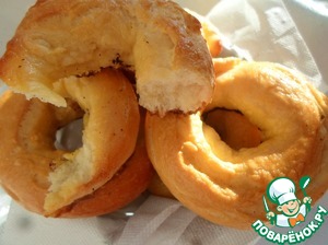 Багельсы-это сдобные еврейские булочки. Довольно просты в приготовлении. Я сделала маленькие булочки, но можно сделать парочку крупных. Сверху тесто с лёгкой хрустинкой, а внутри нежный мякишь. На вкус не приторны, а слегка сладковаты.