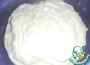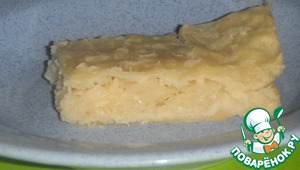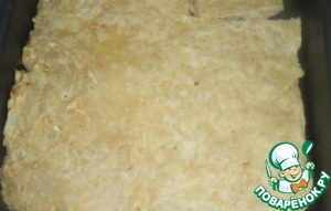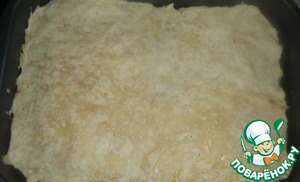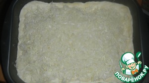 3. Тесто делим на 2 части. Первую часть раскатываем на противне.